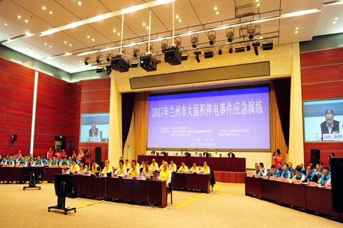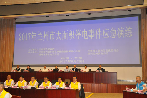 为贯彻落实《国家大面积停电事件应急预案》和《甘肃省大面积停电事件应急预案》,进一步提升城市电力应急管理水平,促进全社会建立电力应急协调联动机制,省市两级历时半年精心筹划,兰州市大面积停电事件应急演练于9月26日上午在国网甘肃省电力公司成功组织开展。本次演练由兰州市人民政府主办,兰州市大面积停电事件应急指挥部办公室、兰州市工信委、国网甘肃兰州供电公司承办。兰州市大面积停电事件应急指挥部成员单位、重点企业等50家单位参加可此次演练,现场参加演练人员共300余人。
